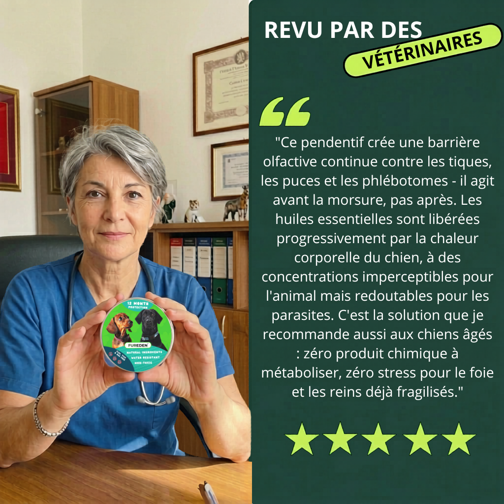 FurEden™ – Pendentif Anti-Puces & Tiques Naturel | 12 Mois de Protection pour Chien